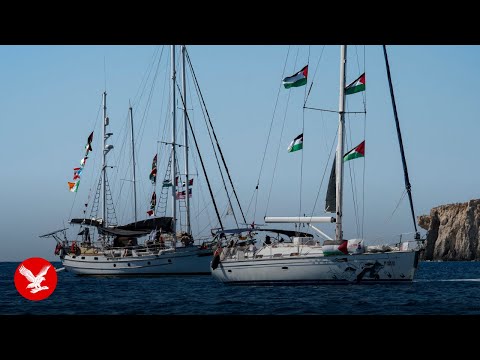 View from boat cameras of the humanitarian aid Sumud flotilla as boats sail towards Gaza. Dozens of boats in the flotilla have declared a state of emergency as they brace for interception by Israeli naval forces as they look to deliver aid to the Gaza Strip. The Israeli military is expected to begin intercepting the vessels within an hour, according to activists on board, who say the navy blockade is around 10 miles from the flotilla. More than 500 activists, including Greta Thunberg, are on board around 45 boats carrying aid through the Mediterranean Sea for more than one month, looking to break Israel’s naval blockade of Gaza as the enclave remains in the grip of widespread hunger.